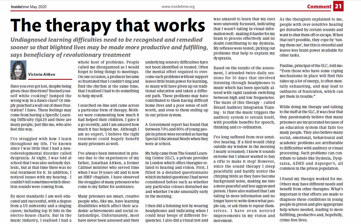 The therapy that works_by Victoria Aitken_Insidetime May 2020